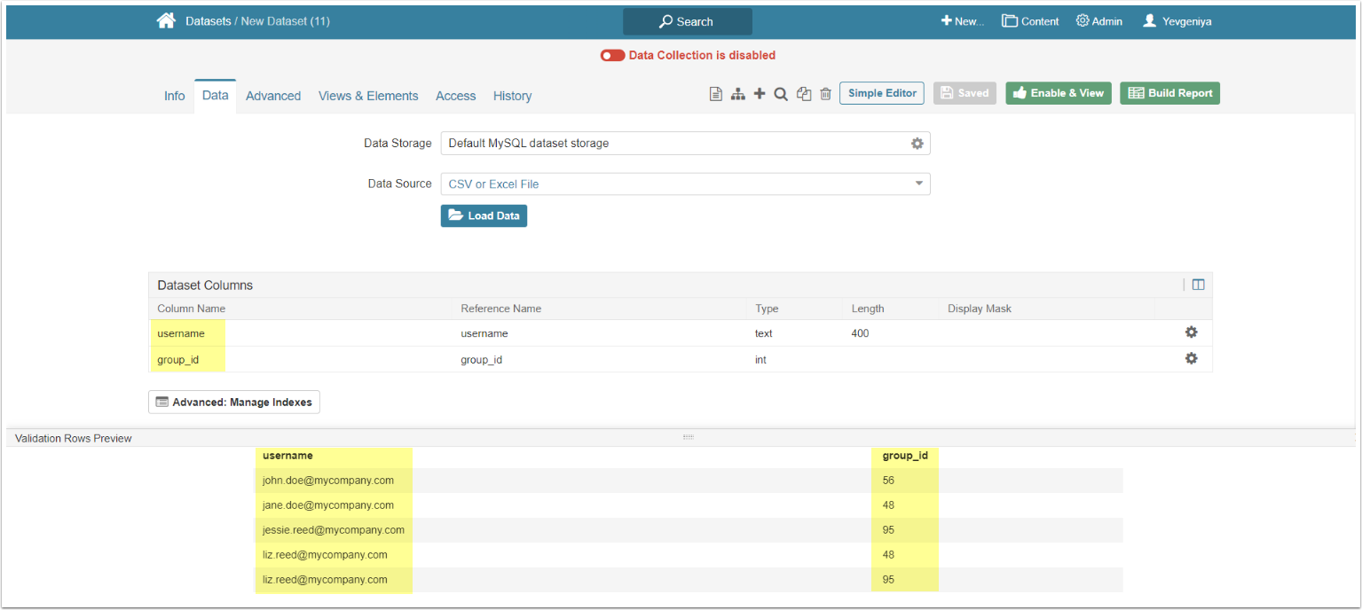 - Configured Custom Script that configures user access to groups upon the initial login based on the Dataset. See the example Custom Script- NOTE: The "User Management Access" setting must be enabled for the External Application associated with the Script.