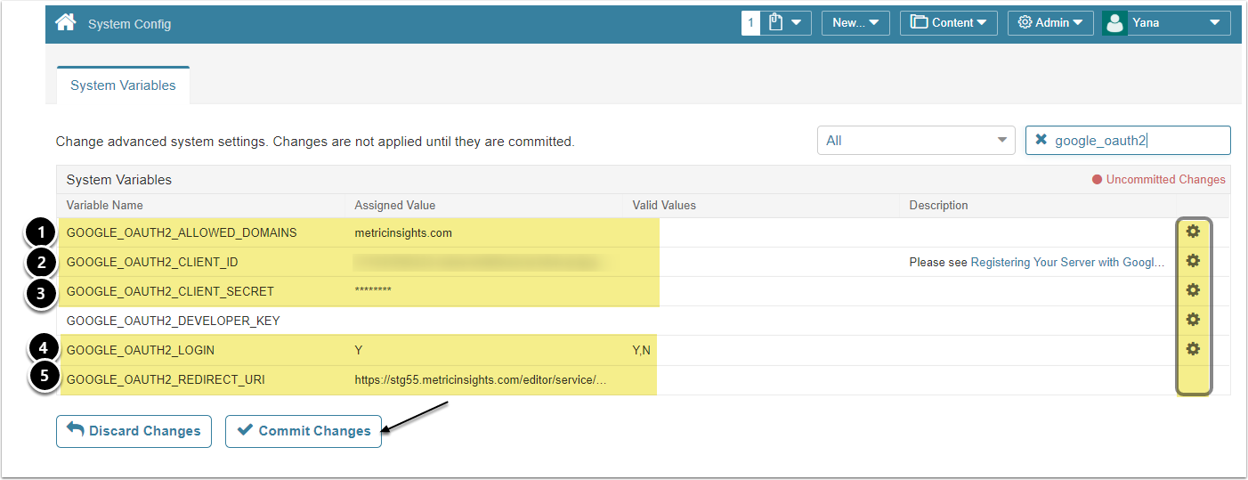 - GOOGLE_OAUTH2_CLIENT_SECRET: input the Client Secret from the Google Client App you have created for integration