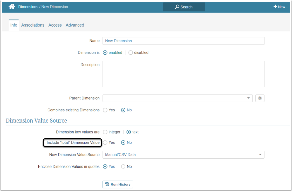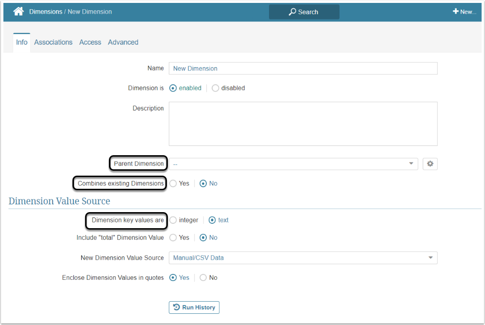 - Are Simple Dimension Values (Combines existing Dimensions option is set to "No") , and