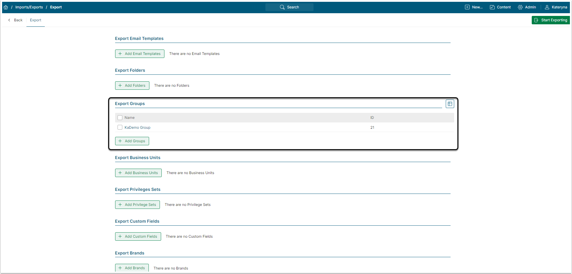 - [6.4.4] If the Group is exported along with another Element or Object, i.e., the Portal Page is exported with the Group it is shared with, and the Group exists on the target instance, its connections to Folders are not updated - If the Group is exported along with another Element or Object and the Group does not exist on the target instance, it is created and connected to the existing Folders. In this case, connections an existing Folder has to other Groups on the target instance are not updated
