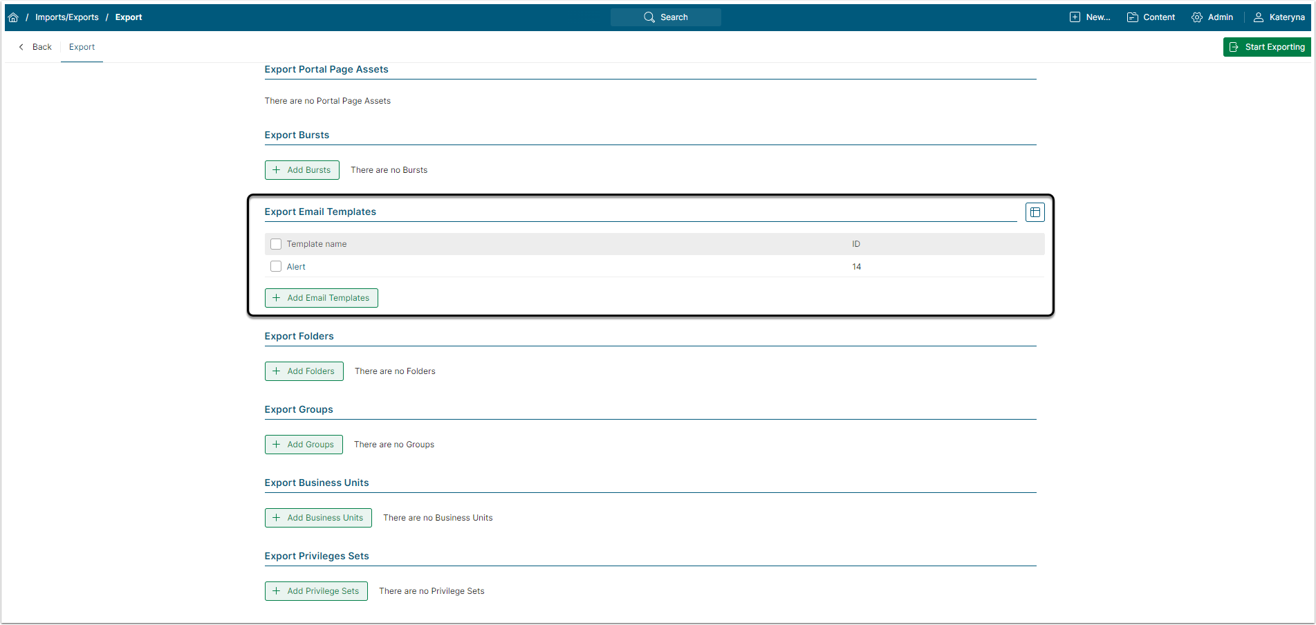 - If an Email Template is migrated from a source instance and there is Email Template with the same name and type on a target instance, the Template on a target system will be updated with the information form the source system