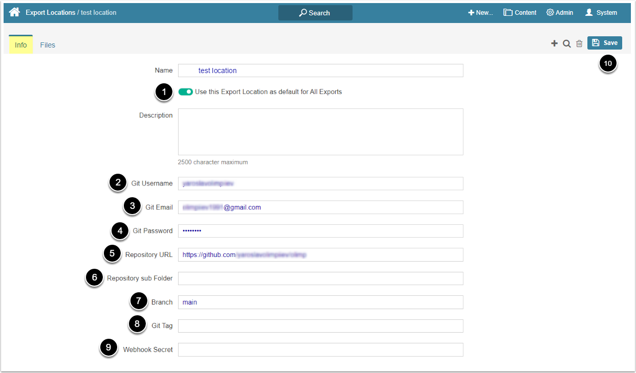 - Repository sub Folder: Optionally, enter the repository subfolder for uploading the exported .tar.gz files