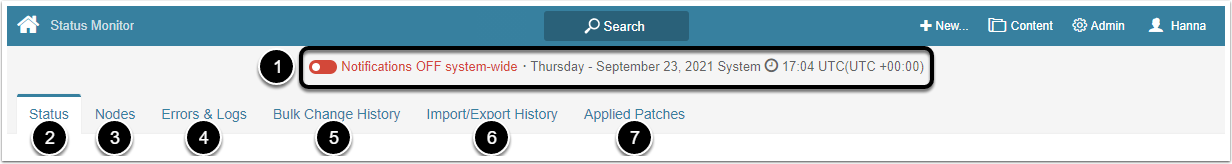 | 7 | Notifications ON/OFF system-wide | Displays the information about who and when changed the setting. For more details, refer to My Notifications (Overview, Set up, Turn on / off). |