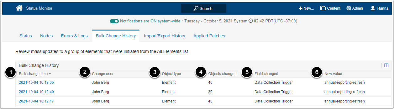 | 2 | Change user | Displays a user who made a bulk change. |