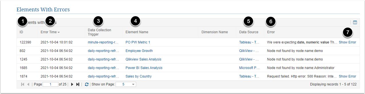 | 4 | Element Name | Displays an Element name with an error. |