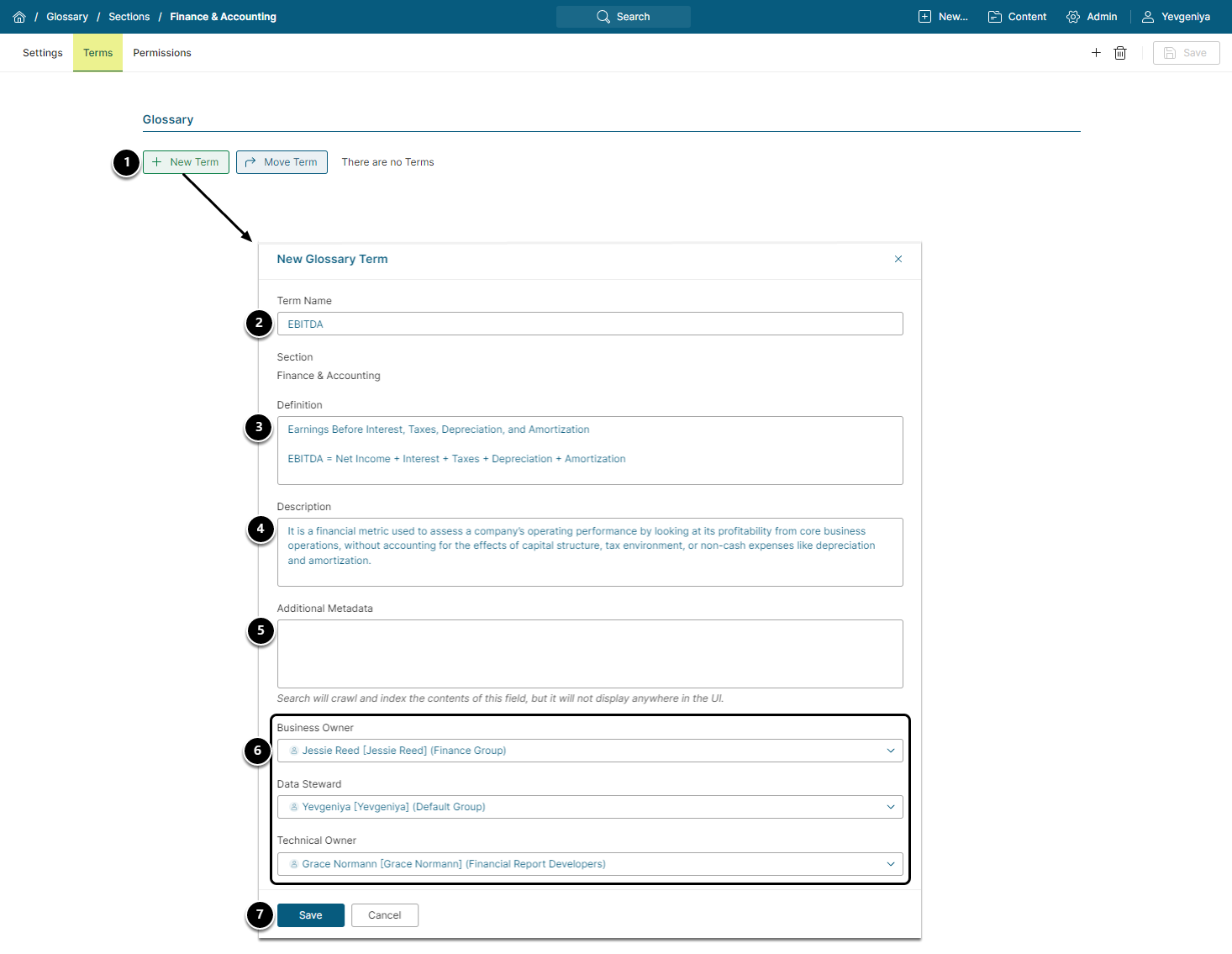 - (Optional) Description: Describes how the Term is known by Business Users. Character limit is 200,000.