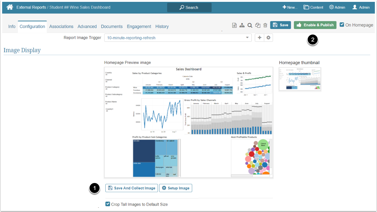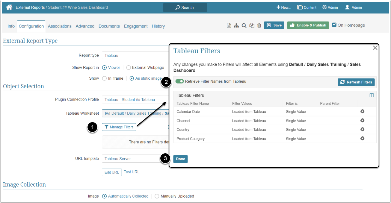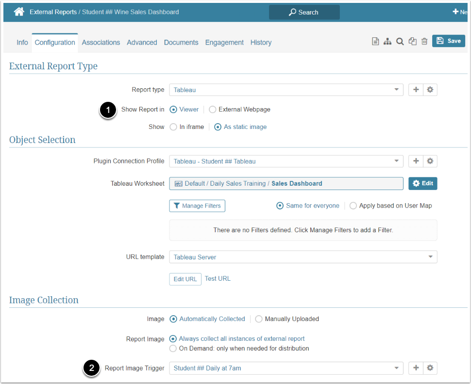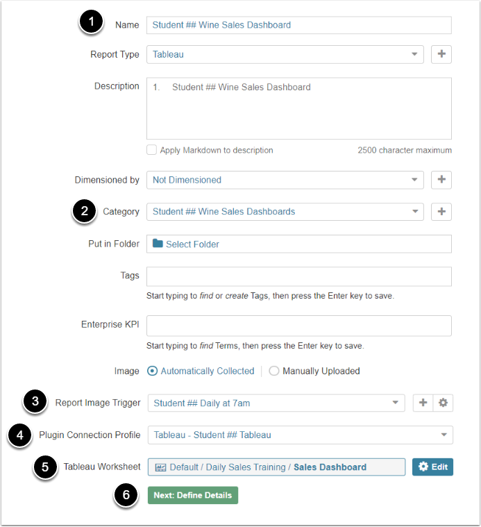 - Name: Name the External Report "<your name> Wine Sales Dashboard". In this use case "Student ##" is used instead of a name