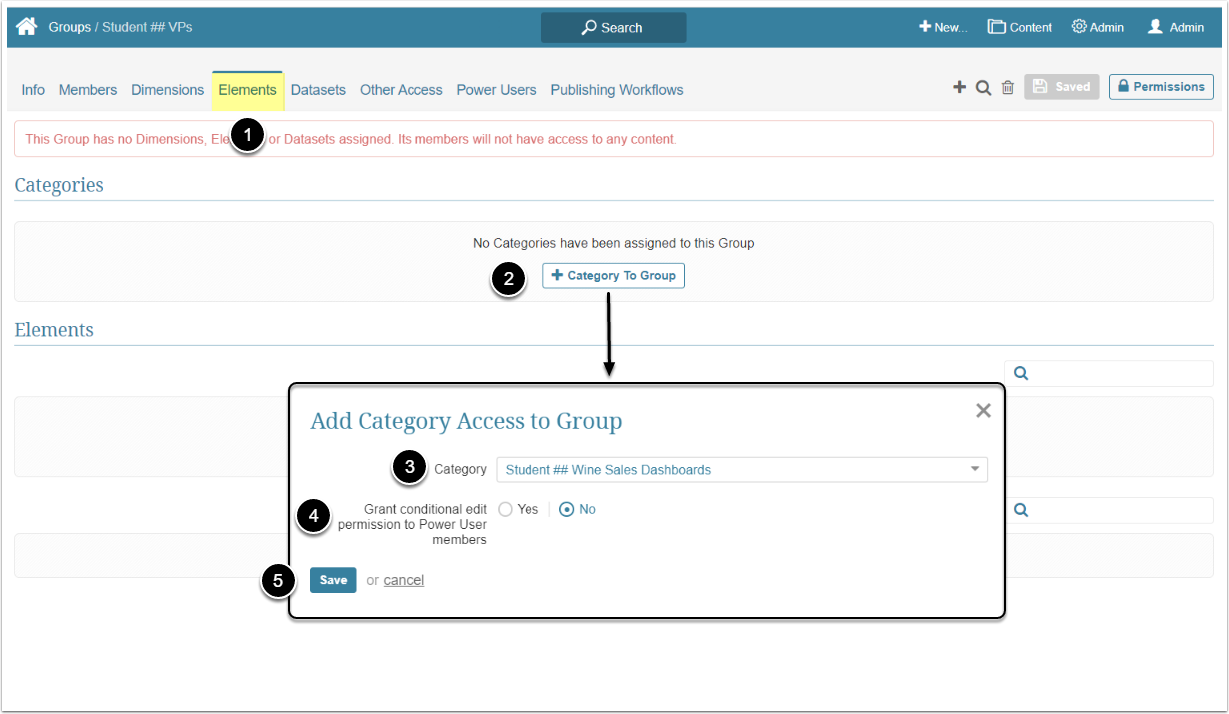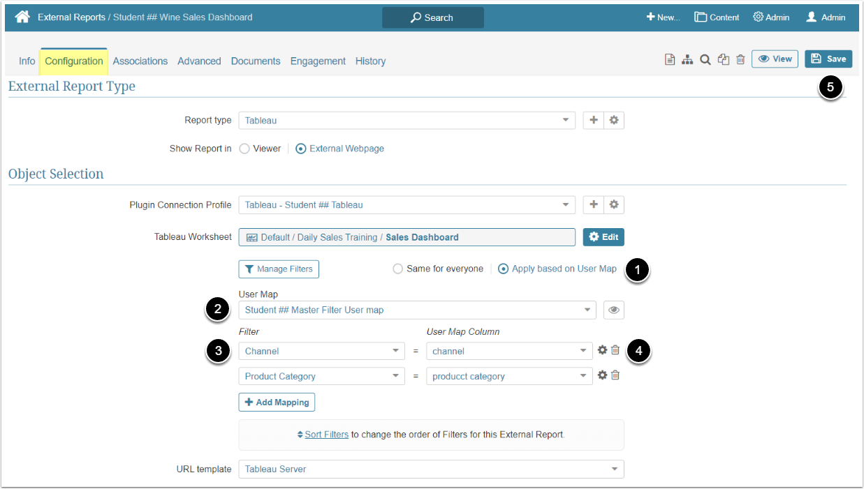 In this section you will create a Category for the content, an External Report to which that Category will be applied and a User Map that will define what part of the data will be visible to Users.