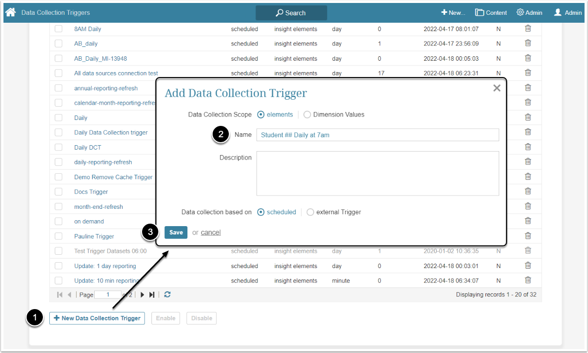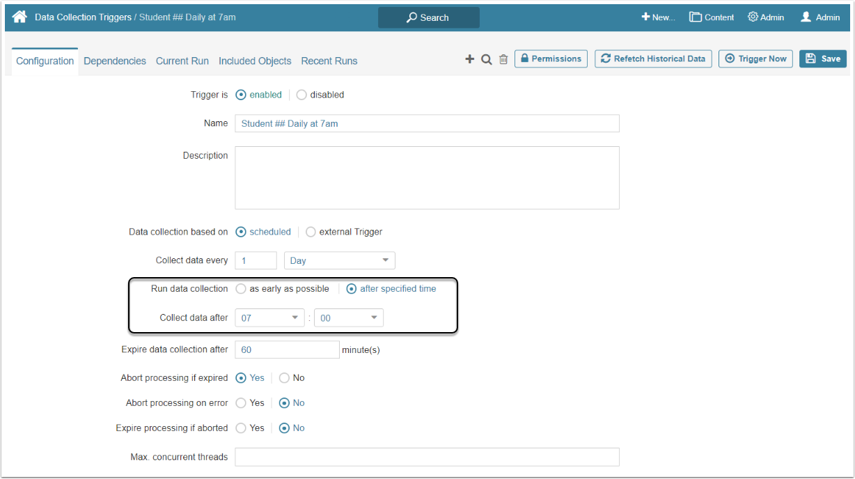 Data Collection Triggers define when content should be updated within Metric Insights. You can select at what time and how often the data will be collected from Tableau. For more details about Data Collection Triggers, check this article.