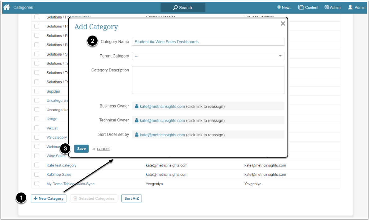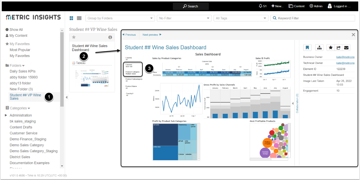- Category: Select the "<your name> Wine Sales Dashboards" Category