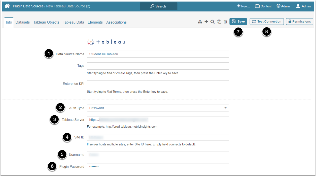 - Plugin Connection Profile: Select "<your name> Tableau" Data Source