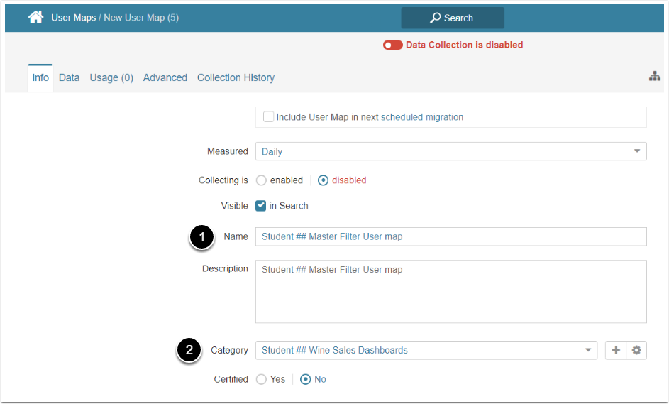 - User map: Choose the "<your name> Master Filter User Map" User Map you created