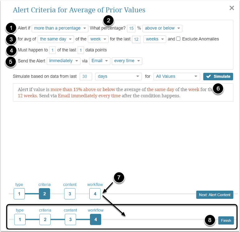 - For avg of: Select "the same day", "week", "12", and "weeks"