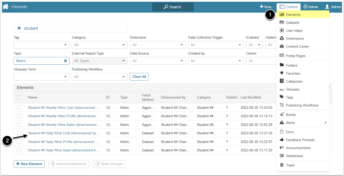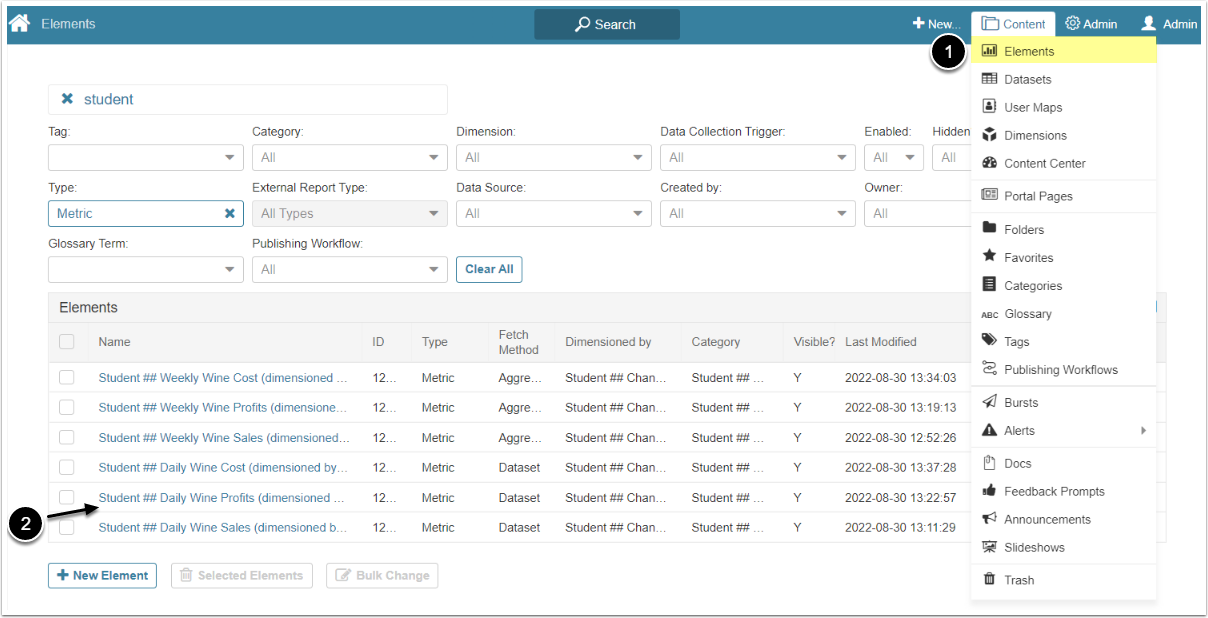 - Name: Name the Metric "<your name> Daily Wine Profits". In this use case "Student ##" is used instead of a name