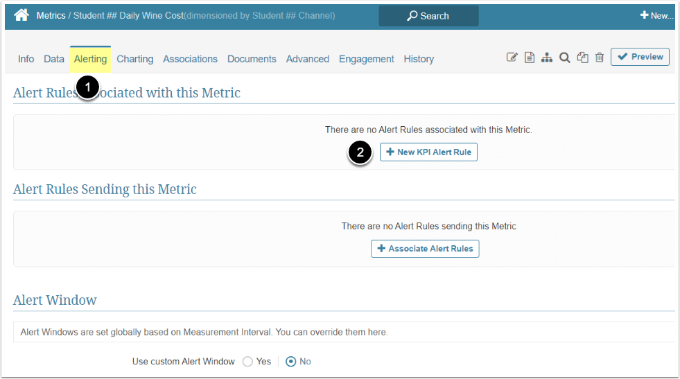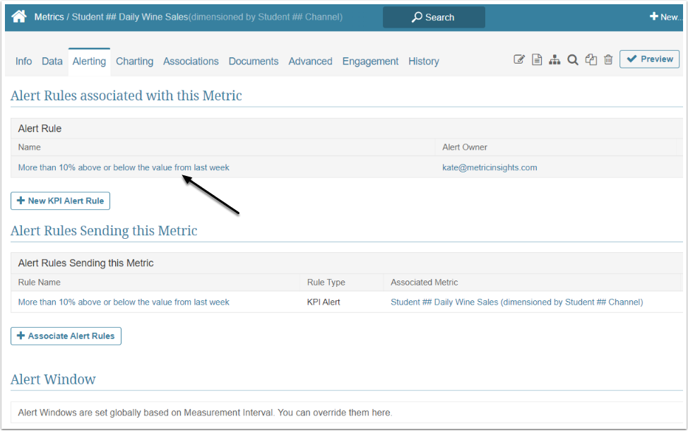 KPI Alert Rules are created to notify Users about changes occurring in Metrics. With the help of KPI Alert Rules, you can define in what circumstances Metric Insights will alert you about the changes.
