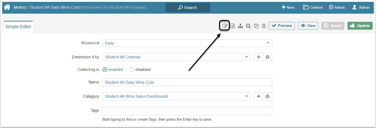 - Name: Name the Metric "<your name> Daily Wine Cost". In this use case "Student ##" is used instead of a name