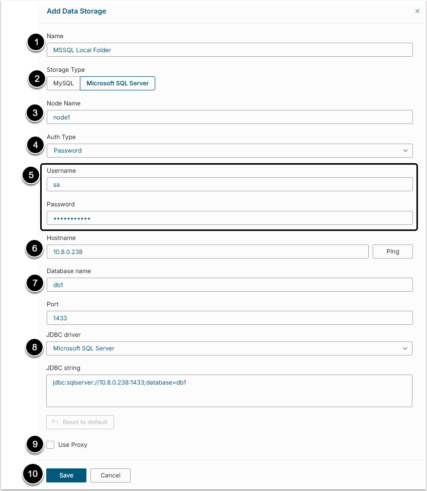 Use Proxy: Define either you want to use a proxy to connect to the Data Storage or not.- See Create a Proxy for details on configuring Proxy objects.