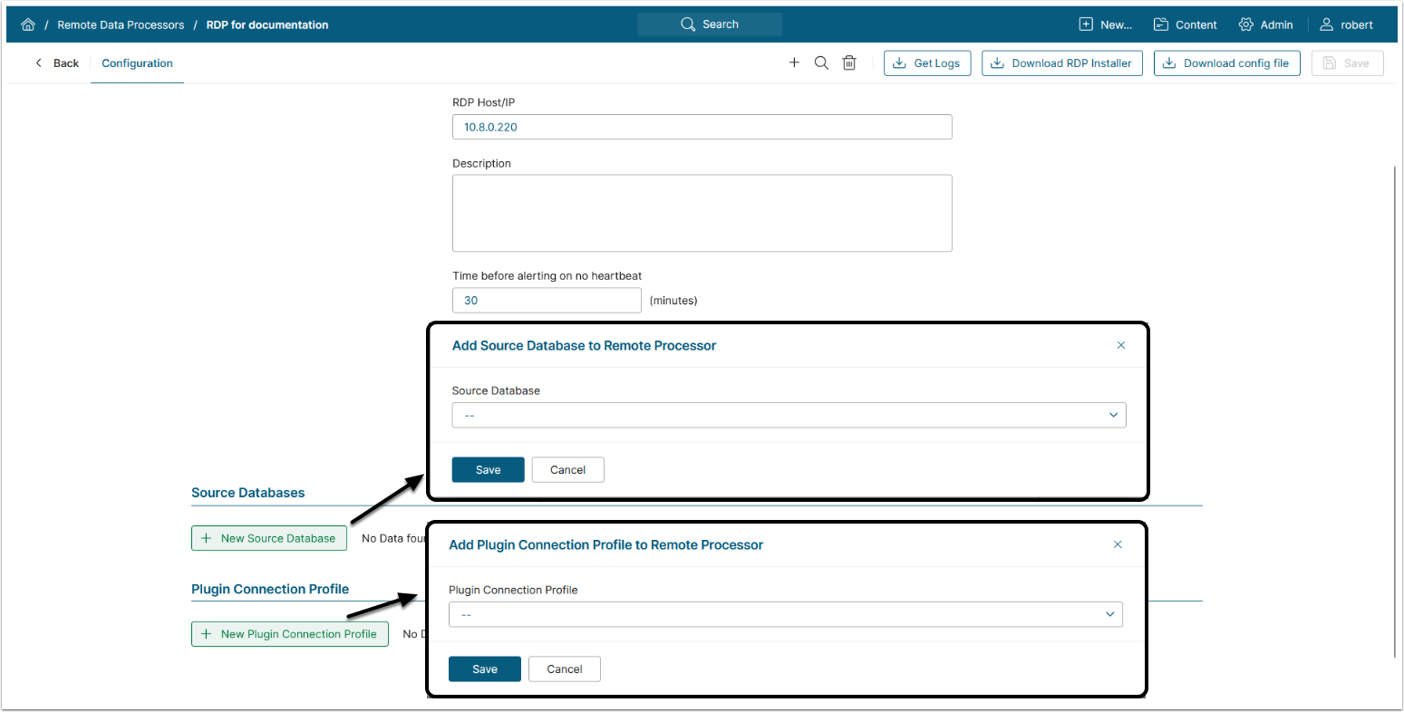 - You can [Download config file]  dp-<hostname>.jsonseparately without downloading the whole installation package, if your configuration needs to be updated or if you are running multiple RDP services
