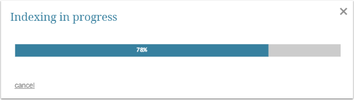 NOTE: The search index update is a required step and must be finished before Concierge will work correctly. This step may take some time to complete, depending on how many objects you have in your Metric Insights instance. Indexing progress is shown in the Indexing in progress bar.