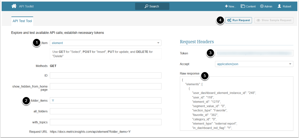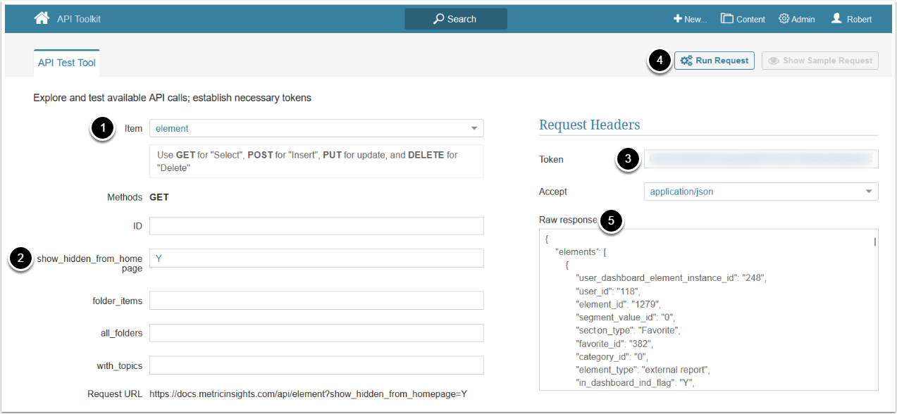 - The returned object contains an array of objects representing all elements available to the user and all Folder items, including items from the Folders not displayed on the Homepage.- See Example Response and Fields Description for details