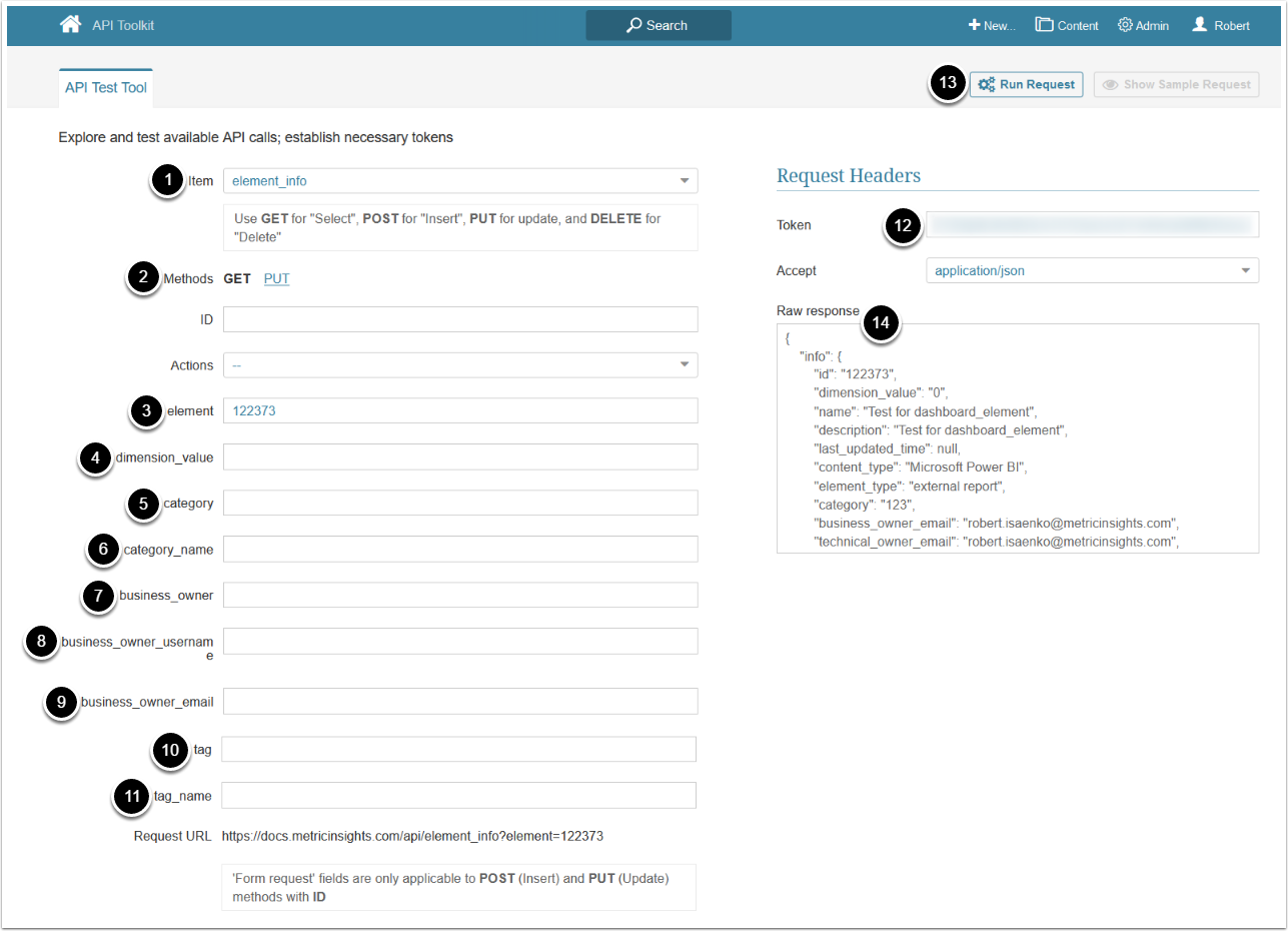 This article describes API calls available for retrieving and updating Element data in the Metric Insights Catalog. The response can be parsed to populate objects with information specific to one or more element IDs: