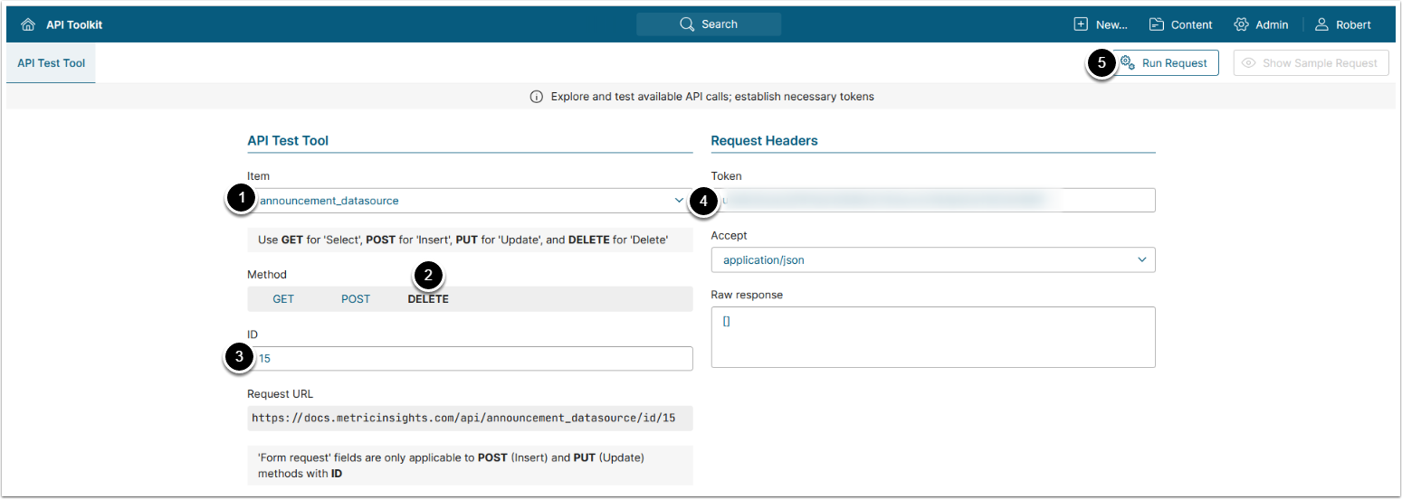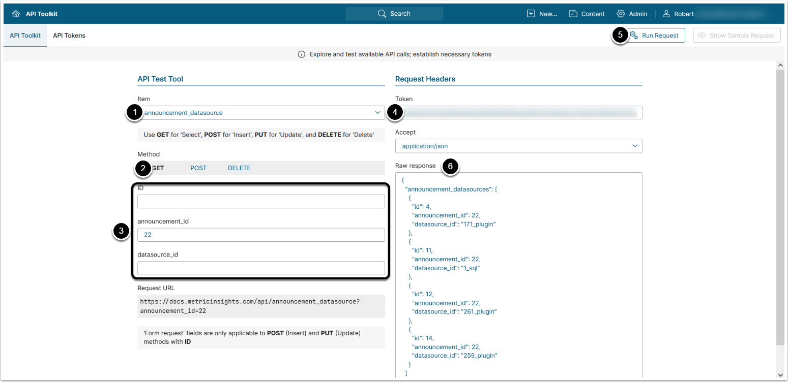 Note: In order to add or delete Announcement Data Sources you need to execute GET request first to obtain the value of the id property of the Announcement Data Source data entry.