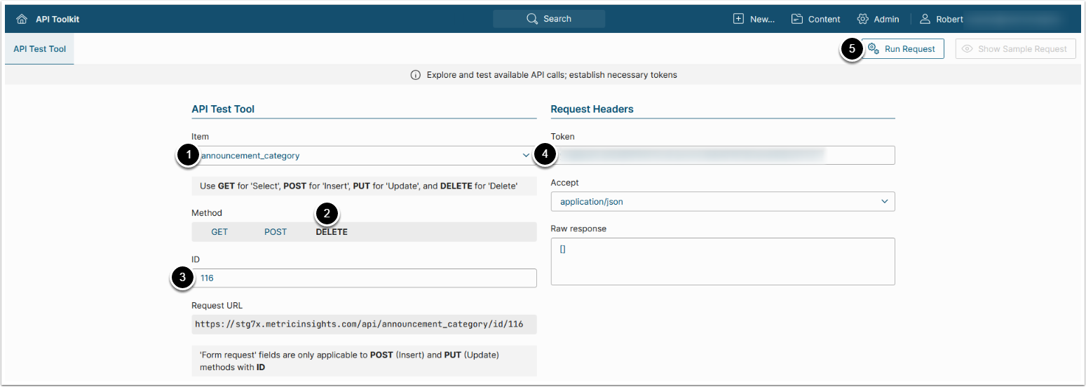 Note: In order to add or delete Announcement Categories you need to execute GET request first to obtain the value of the id property of the Announcement Category's data entry.