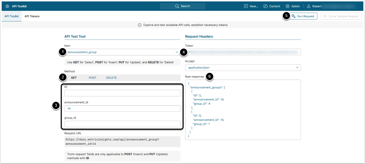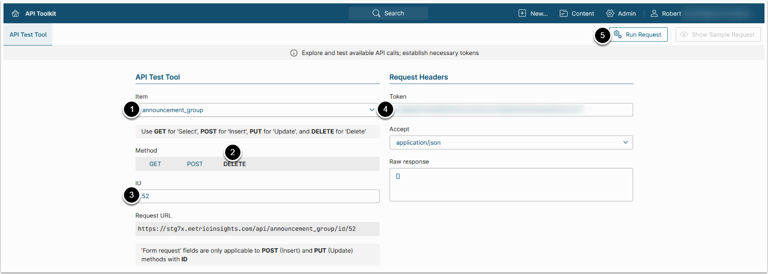 Note: In order to create or delete Announcement Groups you need to execute GET request first to obtain the value of the id property of the Announcement Group's data entry.