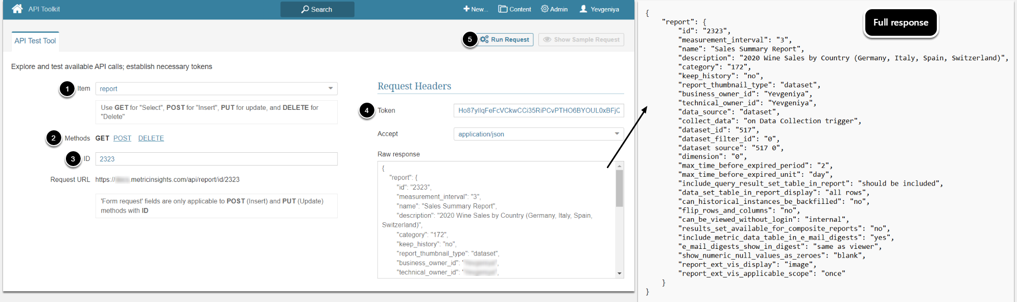 - ID: Specify the ID of a Report you wish to get information about. Report ID can be determined in the web browser URL of the Report Editor. For example: