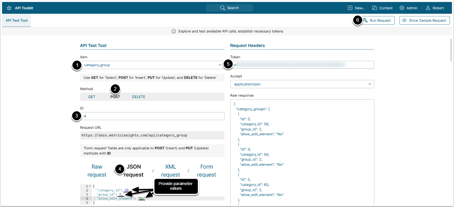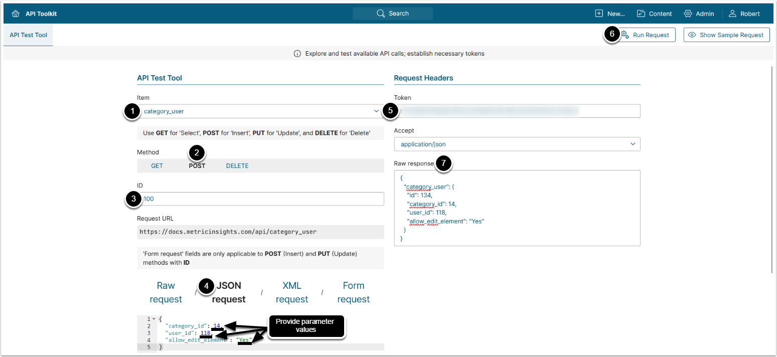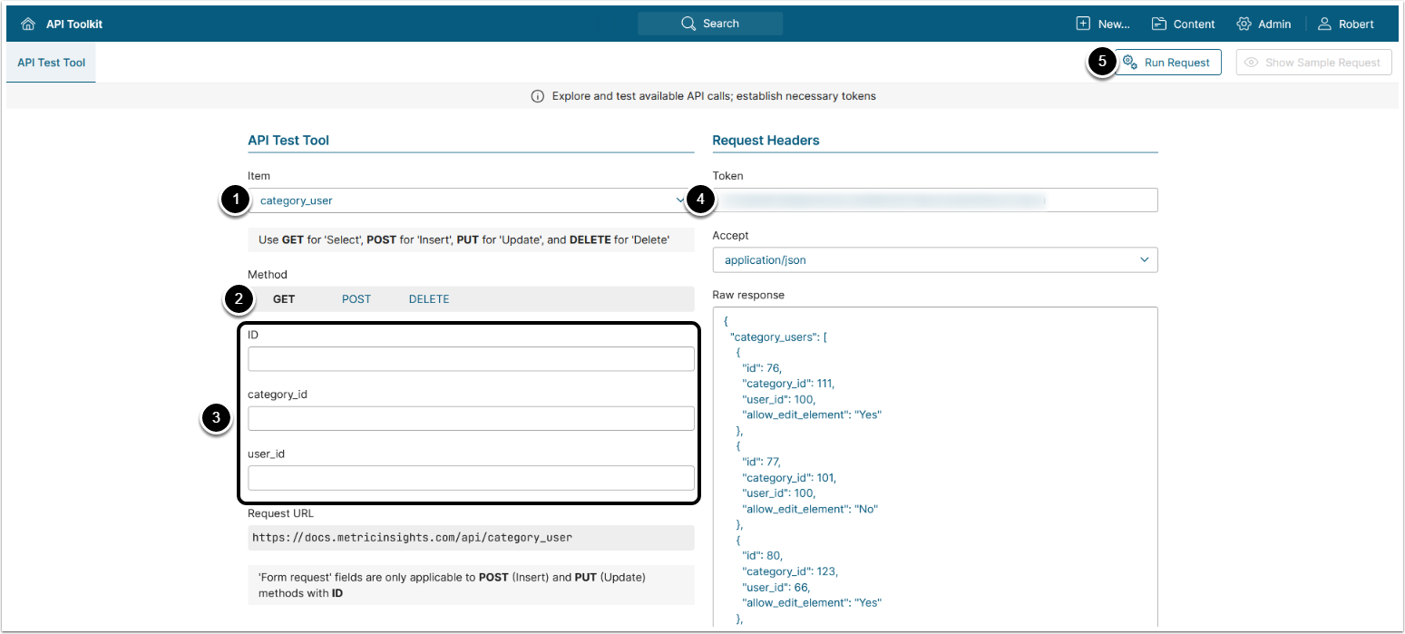 - Enter the ID of an existing category_user data entry- See Get User Categories for details