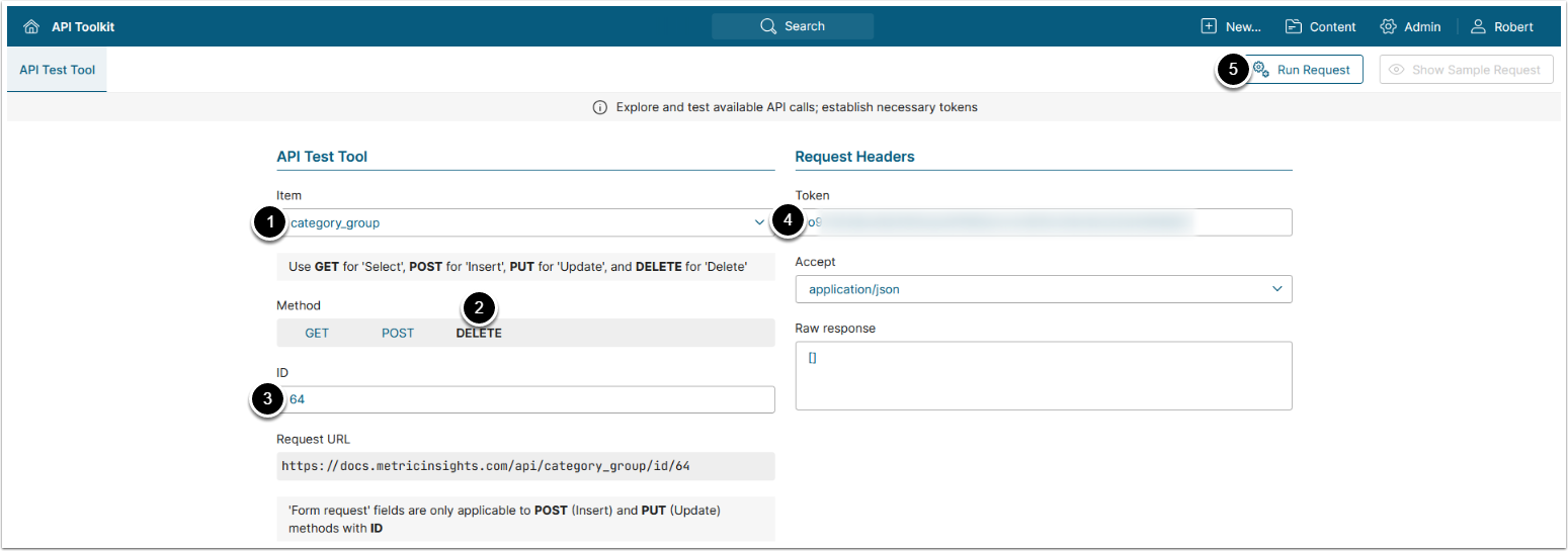- Enter the ID of category_user data entry that needs to be deleted- See Get User Categories for details
