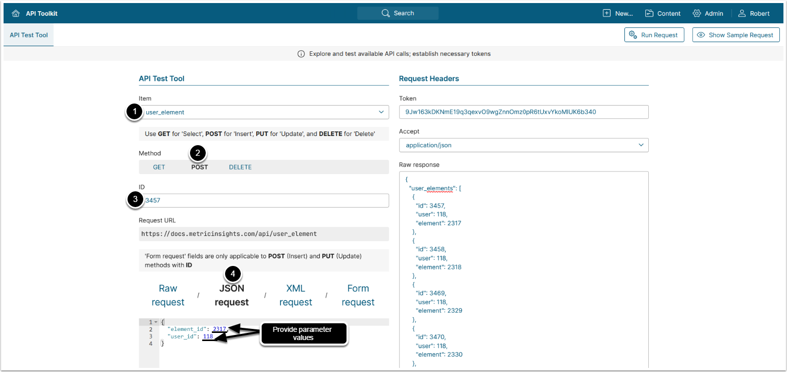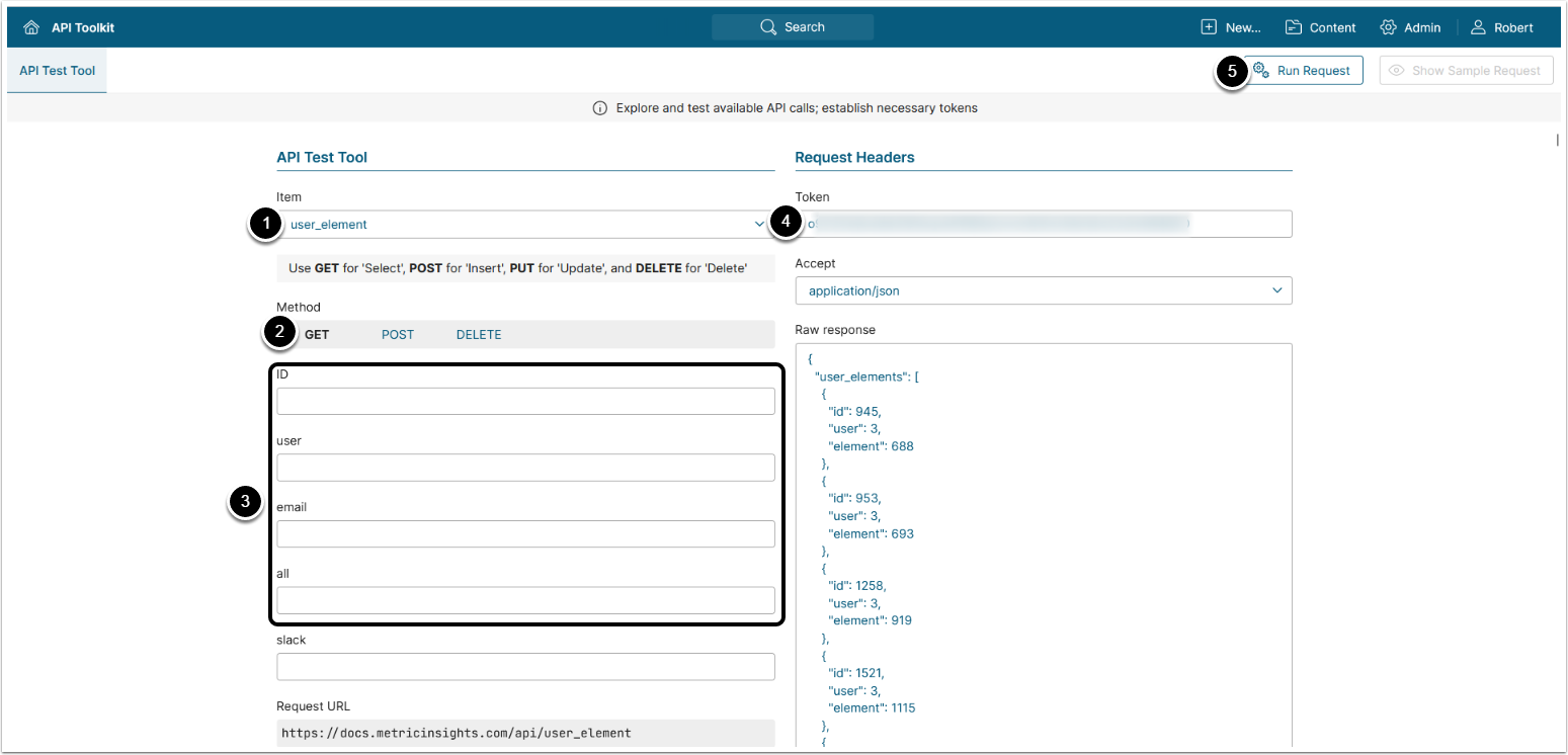 - Enter ID of an existing user_element data entry- See Get User Elements for details