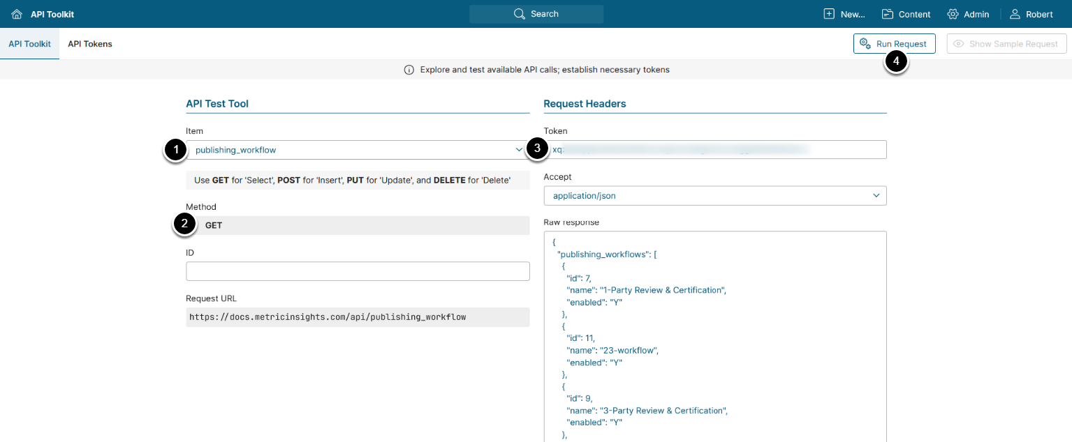 This article provides sample API calls for Publishing Workflows in Metric Insights: