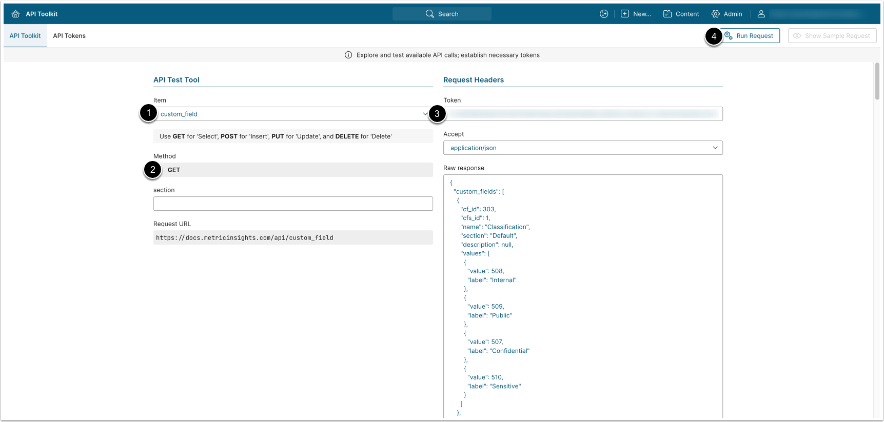 - The GET request to /api/custom_fieldretrieves all Custom Fields.