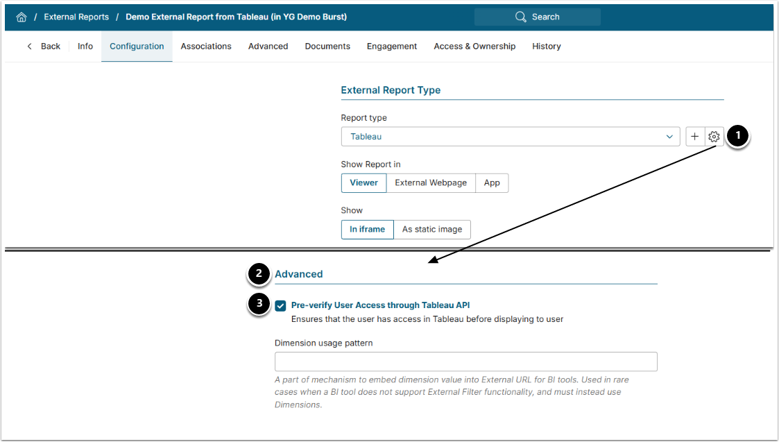 - Pre-verify User Access through Tableau API: Enable.