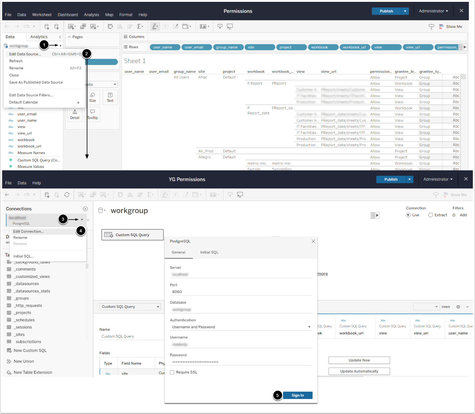- Import the Tableau permissions Workbook