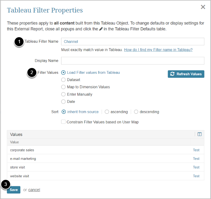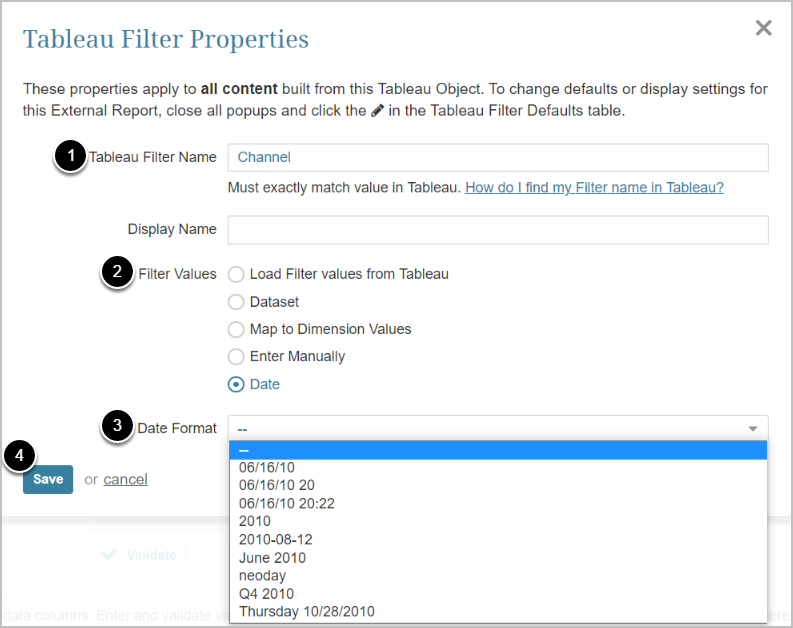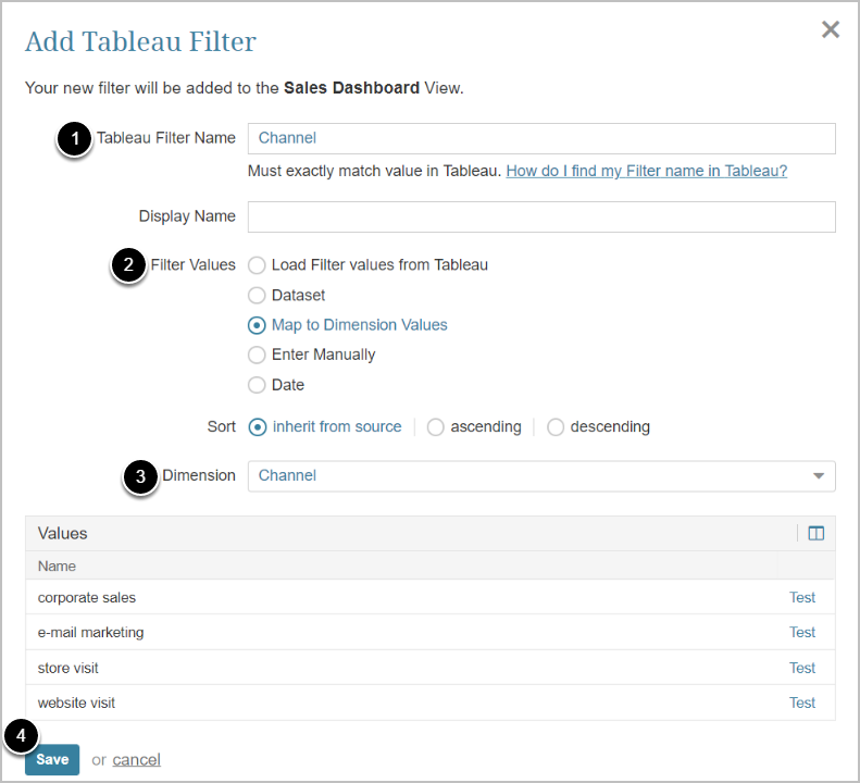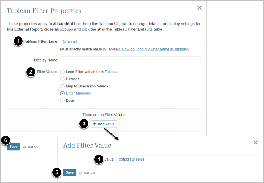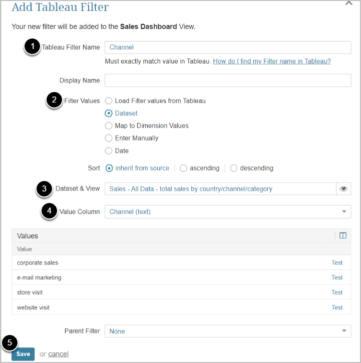 - Enter Tableau Filter Name