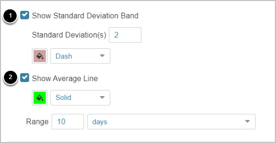 - Specify if you want to Show Standard Deviation Band. If yes, define the following settings:- Specify a number of Standard Deviations