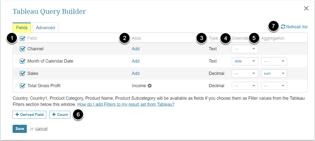- Override: Only "decimal", "integer", and "date" data types can be aggregated, change the type of data as required