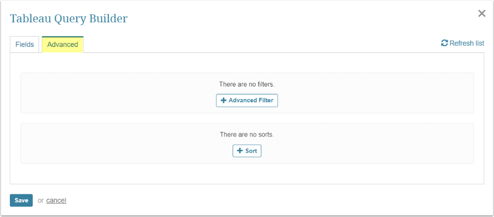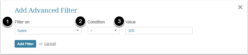 [+ Advanced Filter] to open the Add Advanced Filter window