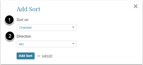 - Direction: Select how the data in the selected column is to be sorted, in ascending or descending order