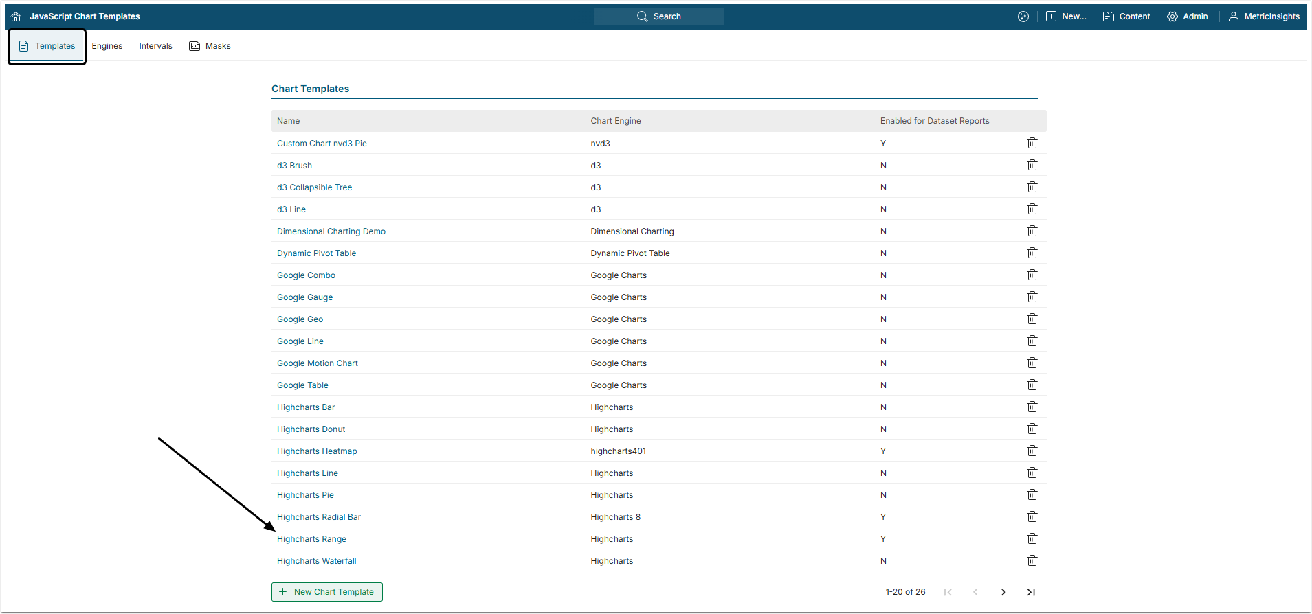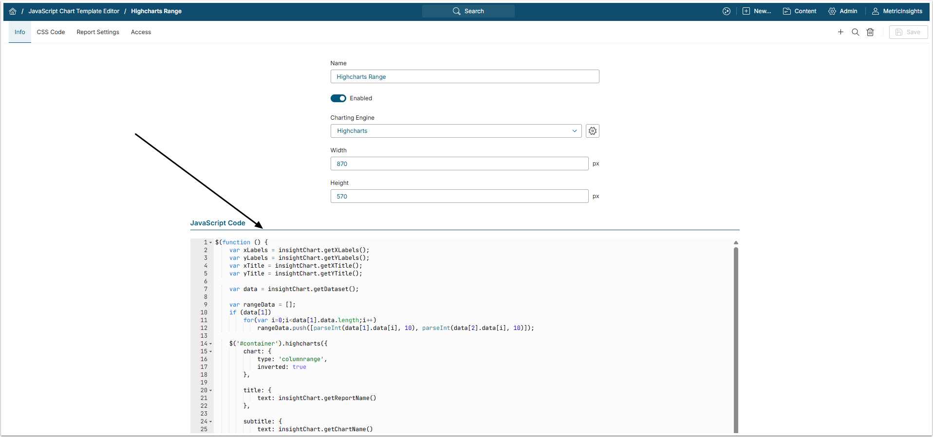 There are several JavaScript Chart Templates to use for JavaScript charting in Metric Insights that can be customized if necessary. This article describes how to customize an existing JavaScript Chart Template.