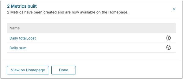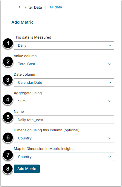 - [Add Metric] to save these settings and preview the resulting Metric.