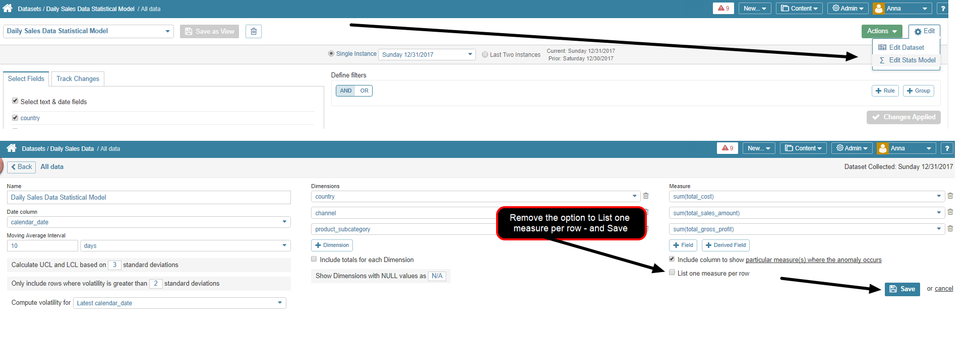- List one measure per row: Select to alternately display one row for each separate measure with an anomaly instead of concatenating