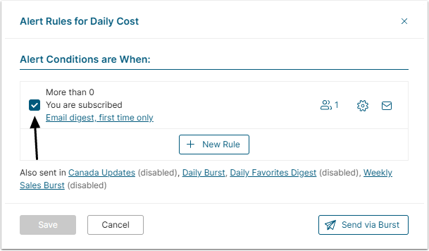 To unsubscribe from this Alert Rule, clear the check box next to the Alert Subject.