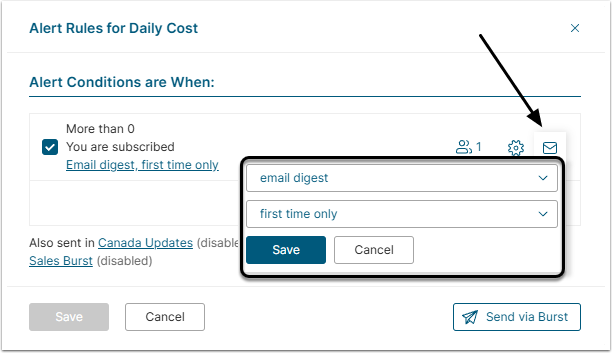 - Email digest. All new alerts will be bundled into one digest and sent to the User's email