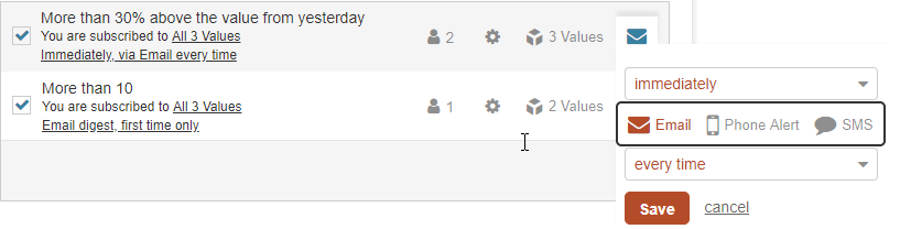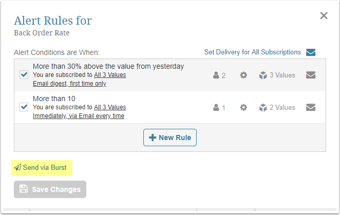 In Metric Insights, it is possible for the User to change how specific Alerts are to be delivered. This article describes how to set delivery methods for all of the Alert Notifications.