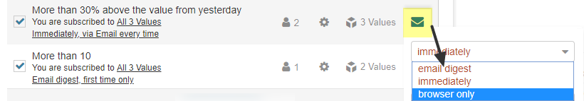 - Bundle all new alerts into one email digest. You can adjust how often your Alert Digest is generated when Setting up Your Alert Subscriptions