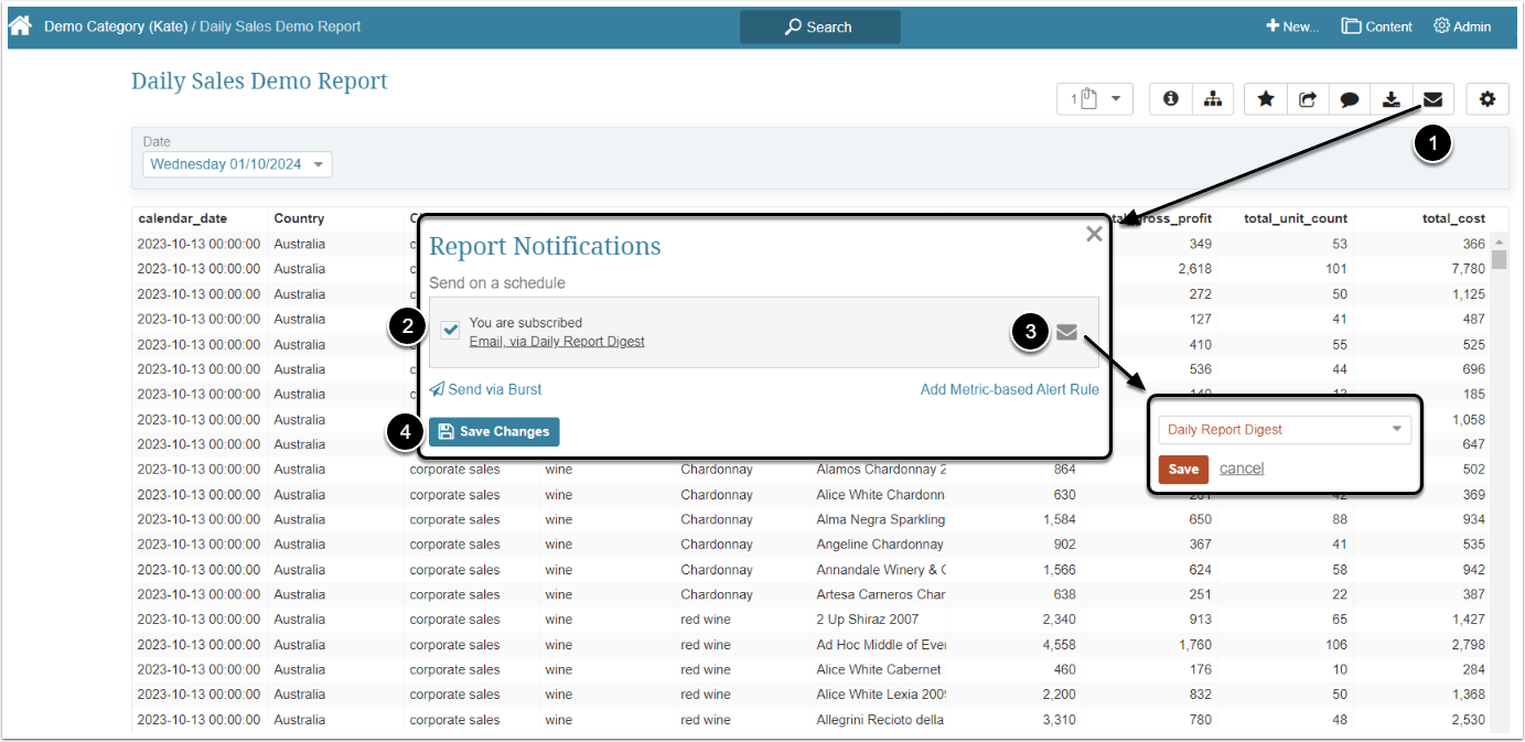 Report Notification is a message that is sent to the User via Burst. It shows changes made to the Report to which the User is subscribed. This article describes how to subscribe for Report Notifications.