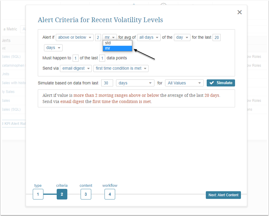 In the first step of KPI Alert Rule Wizard the User has to choose Alert Rule Type. This article describes KPI Alert Rule Type comparison options in details.